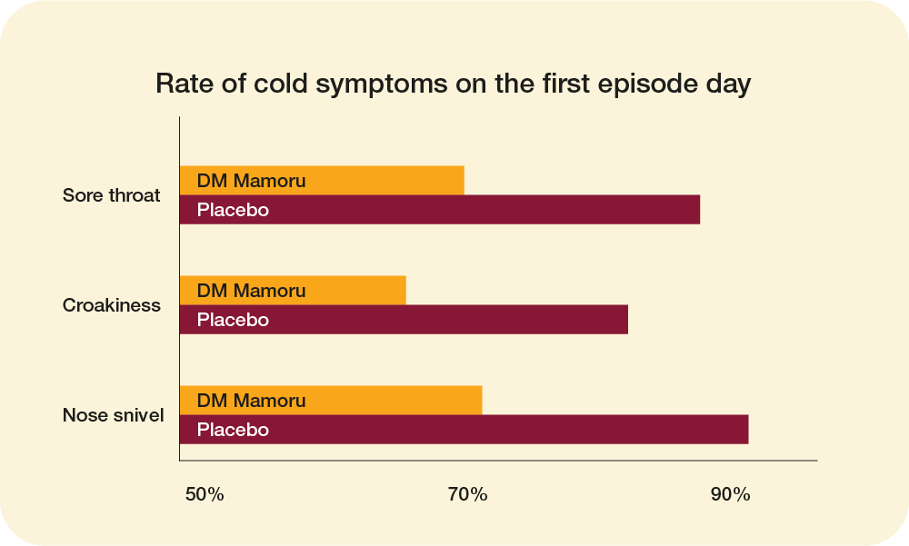 According to clinical study, consistently taking DM Mamoru helps to reduce cold severity and symptoms.